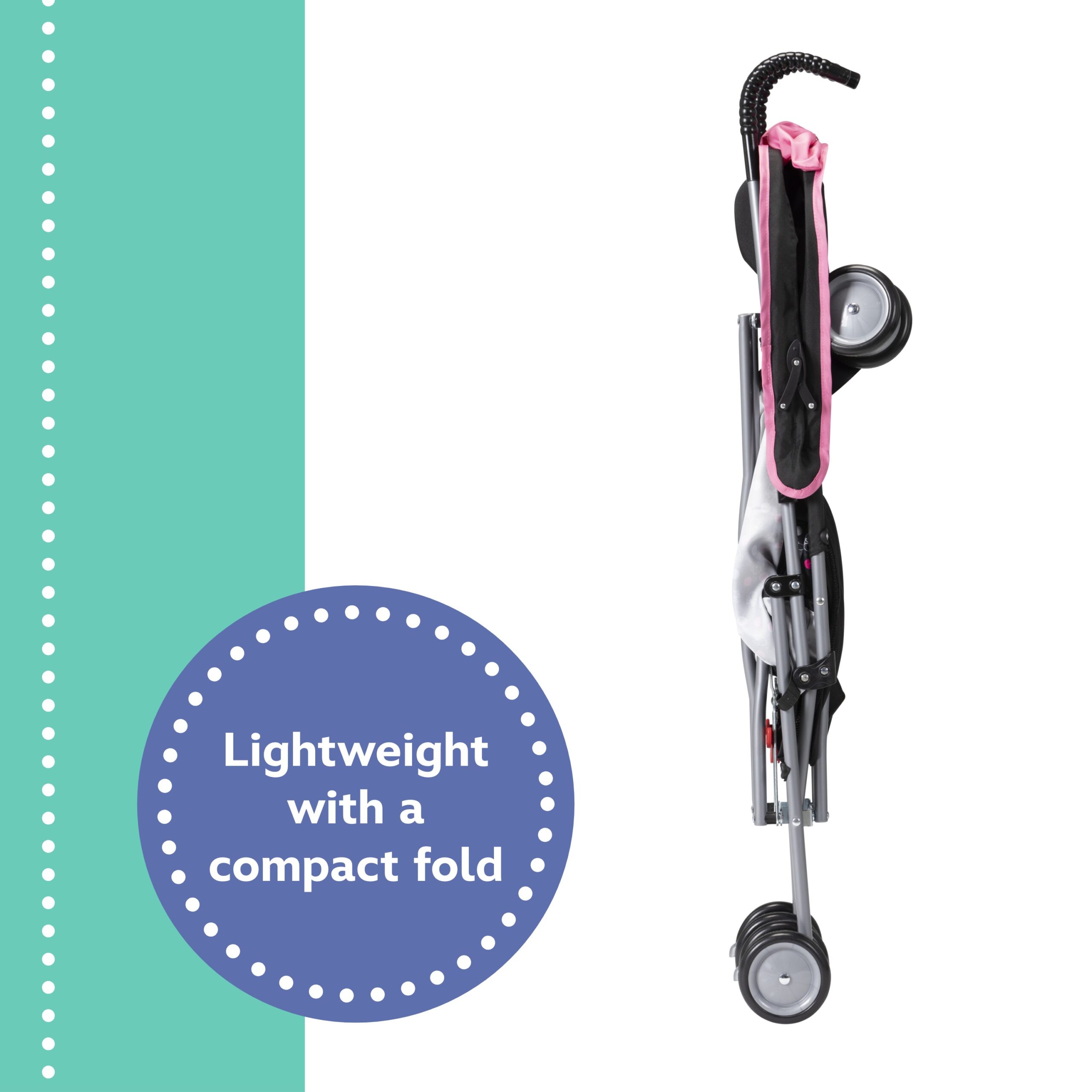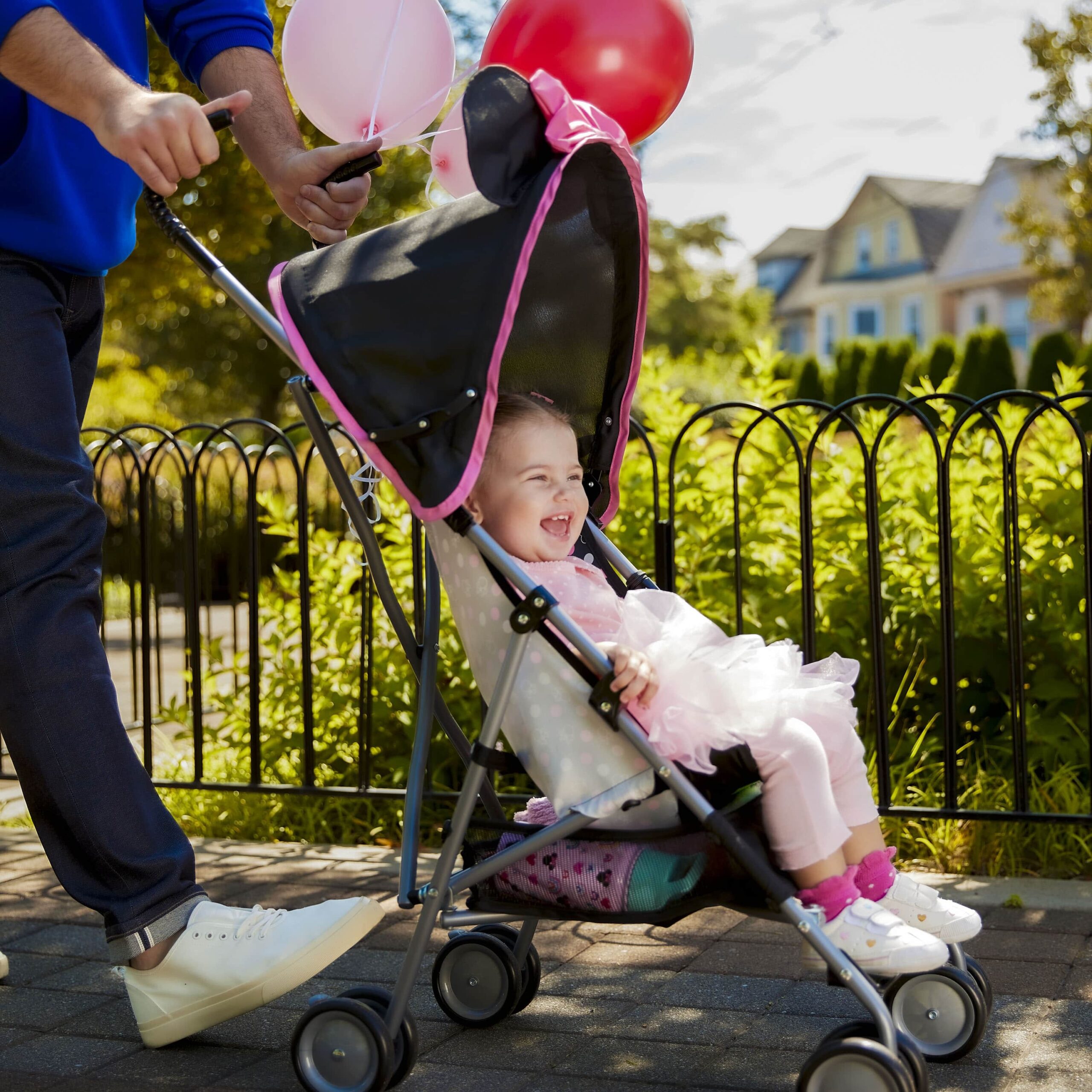 ¡Llamando a todos los fans de Disney! Cuando llevas a Minnie a pasear, ir a lugares es simplemente más divertido. Ya sea que vaya a dar una vuelta por la manzana, maniobrar por el aeropuerto de vacaciones o explorar el Reino Mágico, el cochecito de bebé Disney Baby Minnie Mouse Comfort Height es un compañero de viaje esencial. Los mangos altos y cubiertos proporcionan un empuje más cómodo. Las adorables orejas 3D de Minnie y el lazo rosa en el dosel hacen que esta carriola se destaque al tiempo que proporciona sombra para su niño. Guarda tus artículos imprescindibles en la práctica cesta de almacenamiento para que siempre estén listos cuando los necesites. Mantenga este cochecito de paraguas en espera, compacto escondido en un armario para que pueda agarrarlo y listo. Definitivamente agrégalo a tu lista de empaque para viajes más largos, incluso cuando viajas ligero. Peso montado: 8.16 lb. Su pequeño mouseketeer está seguro de estar sonriendo de oreja a oreja.