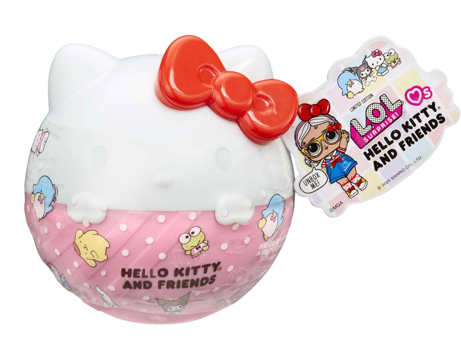 PERSONAJES EMOCIONANTES: Hazte amigo del L.O.L. Surprise! más reciente Tots inspirados en los personajes de Hello Kitty y sus amigos: Hello Kitty, Cinnamoroll, Pochacco, Keroppi, My Melody, Pompompurin, Kuromi y Tuxedosam