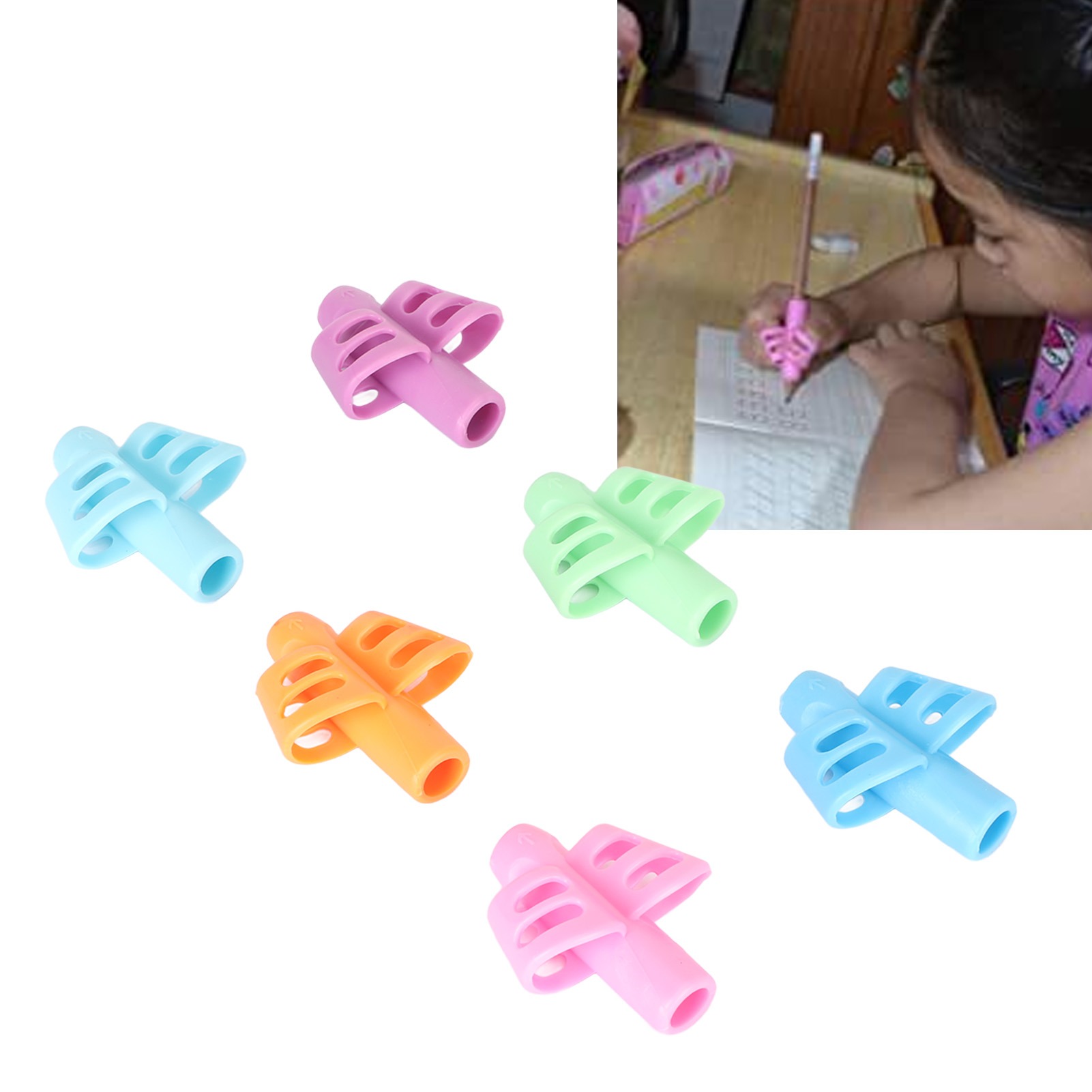 Paquete de 6 soportes ergonómicos de silicona suave antideslizante para lápices de escritura a mano, para escuela en casa, soporte de bolígrafos, niños,