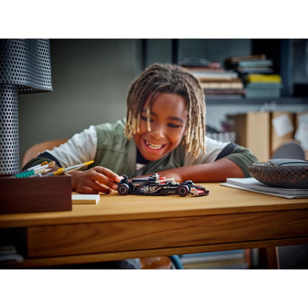 1 minifigura: El kit incluye un vehículo y también una minifigura de un piloto con traje de competencia del equipo MoneyGram Haas F1® Team y casco con alas; los peques pueden colocarla en el habitáculo e imaginar que corren vertiginosas carreras