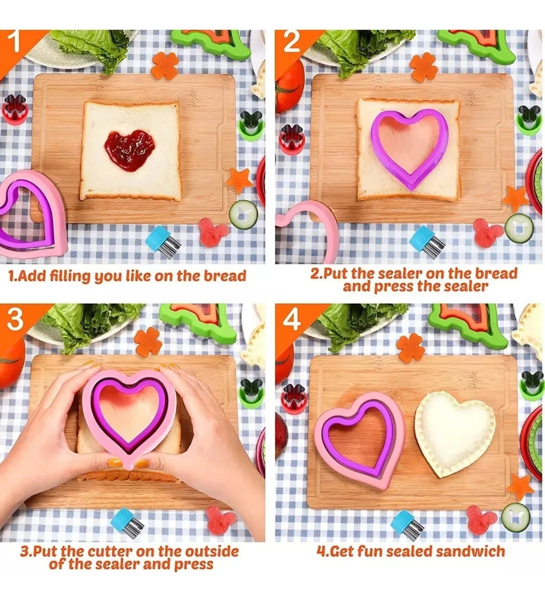 Juego de cortador y sellador de sándwiches para niños, cortadores de frutas, formas, palillos de alimentos, cortadores de sándwich,