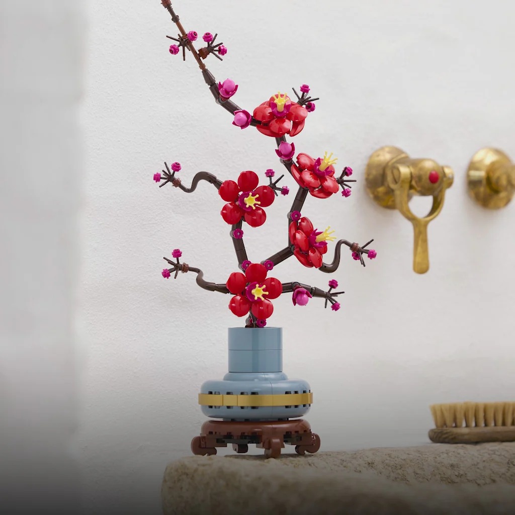 Set de flor LEGO® detallado para constructores de todos los niveles: Esta interpretación LEGO de la flor de ciruelo incluye una elegante rama y vivas flores rojas y magentas
